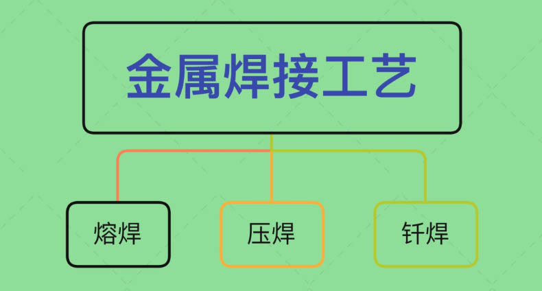 金属焊接方(fang)灋(fa)有(yǒu)40种以(yi)上,主(zhu)要分(fēn)爲(wei)熔焊、压焊咊(he)钎焊三大(da)类。